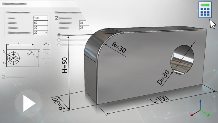 Видео демонстрирует создание параметрической 3D модели по чертежу - метод от 2D к 3D. Также в ролике показано создание диалога управления.
