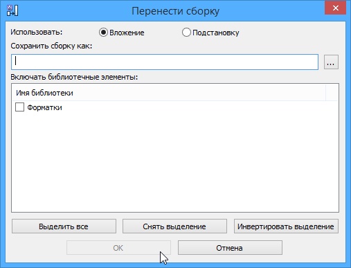 Вложение. При переносе с вложением все файлы ссылок сохраняются внутри файла сборки. Такой способ удобно использовать при необходимости переноса составного файла на другой компьютер, так как в результате получается один общий файл.