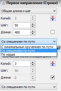 При использовании способа позиционирования "По хорде" размер массива в данном направлении можно задавать, только используя вариант "Количество копий и шаг".