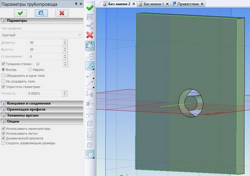 Отображение булевой операции в окне "3D Модель"