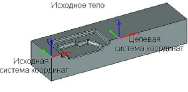 Параметры копирования определяются заданием двух ЛСК: исходной системы координат копирования и целевой. Преобразование осуществляется переносом исходной системы координат вместе со связанными с ней объектами копирования в положение, которое занимает целевая система координат.
