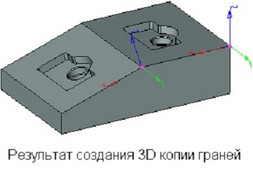 Выбранный для создания 3D копии набор граней может быть произвольным, однако должен полностью описывать геометрию копируемого конструктивного элемента детали. Грани-копии должны лежать в пределах исходного тела и пересекаться с другими его гранями так же, как грани исходного набора.