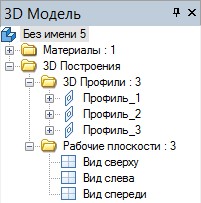 Дерево 3D модели до и после создания 3D копии элементов построения |