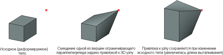 Вершины ограничивающего параллелепипеда можно привязывать к 3D точкам. В этом случае смещение не зависит от изменения деформируемого тела и от того, какие единицы выбраны для задания смещений.