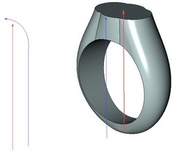 Для целевой кривой указывается её ось, также выбором ЛСК и указанием нужной оси. Для целевой кривой вспомогательная поверхность формируется как множество векторов, направленных из каждой точки кривой на ось по кратчайшему расстоянию.
