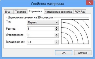 Диалог свойств материала содержит физико-механические характеристики материала, параметры его отображения в 3D сцене и на проекциях, а также параметры для создания фотореалистичного изображения (смотрите главу «Фотореалистичное изображение»).