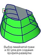 Для построения 3D профиля как развёртки линейчатой поверхности выбирается грань соответствующего типа. Грань может быть как замкнутой, так и разомкнутой, может иметь отверстия различной формы.