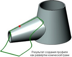 Для создания профиля как развёртки конической грани служит опция:
