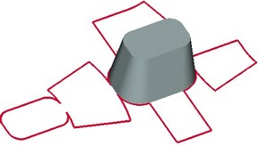 Как это происходит? На плоскости профиля выбирается точка для привязки профиля к точке на грани. Точка, выбранная на профиле, совмещается с точкой, выбранной на грани. После этого профиль накладывается на грань. (Как если бы мы наклеивали этикетку на бутылку.) Для более точной ориентации профиля можно использовать дополнительные элементы. Точка на плоскости профиля, по которой будет осуществляться привязка к поверхности, определяется 3D узлом, лежащим на исходном профиле. В качестве места наложения профиля можно использовать как отдельную грань тела, так и целый набор смежных граней.