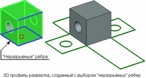 Флажок “Оставлять рёбра на сгибах” позволяет создавать на 3D профиле-развёртке рёбра-границы граней исходного набора.