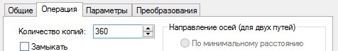 После вызова команды создания операции нужно выбрать 3D профиль, 3D путь для определения положения профиля и 3D путь для определения направления оси X. В параметрах операции на закладке «Операция» нужно задать количество копий – 101 (с учетом поправки) и выбрать опцию для двух путей по минимальному расстоянию.