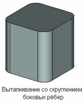 Флажок "Сглаживание боковых рёбер" устанавливает режим скругления боковых рёбер выталкивания. Радиус скругления задаётся параметром "Радиус".