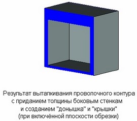 Результатом выталкивания проволочного контура является листовое тело. При выталкивании листового контура получается твёрдое тело.