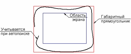 Искать. Параметр может принимать значения "Внутренние контуры", "Наружный контур". В первом случае система ищет ближайший контур, внутри которого находился курсор мыши в момент выбора. Если выбрано значение "Наружный контур", то система ищет наибольший контур в заданной зоне поиска (внутренние контуры при этом не учитываются).
