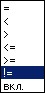 - условие (определяет ограничения на выбор записей таблицы спецификации при подсчете суммы). Выберите колонку, условие сравнения и значение, с которым будет сравниваться содержимое ячейки. Условие выбирается из списка: