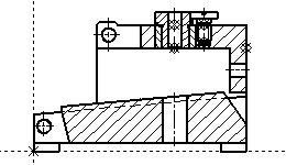 В сборочном чертеже корпус располагается всегда горизонтально, поэтому для его привязки достаточно одной точки. Построим пересекающиеся вертикальную и горизонтальную линии для привязки первого фрагмента и узел на пересечении этих прямых. Нанесем фрагмент,привязав его к этому узлу: