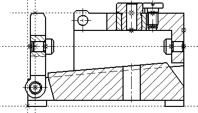 Сейчас нам надо поместить на сборочный чертеж фрагмент прихвата (поз. 2), а в нем разместить вторую опору (поз. 9).Но взаимное расположение этих деталей вступает в противоречие: с одной стороны, вторая опора должна располагаться на одной оси с первой, а с другой стороны, на ее расположение влияет отверстие в прихвате. Рассмотрим один из вариантов решения.