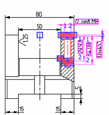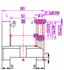 Задавая положение различных 2D элементов в командах их создания/редактирования, при включенной объектной привязке можно не только использовать уже существующие элементы (линии построения, линии изображения, узлы и т.д.), но и выбирать характерные точки, определяемые объектными привязками. В выбранных точках могут автоматически создаваться узлы. Это могут быть узлы на пересечении линий построения, узлы с фрагментов, узлы на размерах, надписях, допусках и текстах, узлы, лежащие по вертикали/горизонтали относительно другого 2D узла, узлы в центре линии изображения-окружности или дуги окружности, и т.п.
