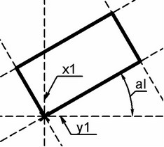 Создайте точку привязки. Постройте линию построения, проходящую через узел, определяющий точку привязки, под углом к горизонтальной прямой. Угол наклона линии задайте переменной, например, "al". При создании переменной пометьте её как внешнюю и задайте значение, отличное от 0 (при значении "0" прямая совпадёт на чертеже с горизонтальной прямой, что затруднит дальнейшие построения). Переменная "al" будет являться внешней переменной чертежа. При вставке данного чертежа в качестве фрагмента системой будет запрашиваться значение переменной "al". Линия построения, проходящая через узел под углом к горизонтальной прямой, задаёт ось X новой локальной системы координат этого чертежа. Для создания оси Y необходимо построить линию построения, проходящую через узел и перпендикулярную линии построения, построенной под углом к горизонтальной линии. Линия, построенная под углом, и линия, перпендикулярная ей, определяют новую локальную систему координат чертежа. Все последующие построения необходимо вести относительно этих линий. В результате получится параметрический фрагмент с одной точкой привязки и переменной "al", которая будет определять угол наклона системы координат фрагмента относительно системы координат сборочного чертежа.