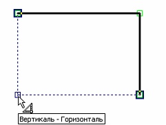 в поле чертежа. Создастся первый отрезок. Переместите курсор влево и установите его так, чтобы осуществилась горизонтальная связь с последним созданным узлом, о чем повествует соответствующий знак около курсора и всплывающая подсказка.