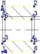 5. Изменить положение начальной точки контура (опции <F>, <B>). При вызове данной опции начальная точка контура переместится до следующей точки сочленения соответственно вперёд или назад.