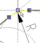 На примере показано изменение привязки точки сочленения контура. После выбора конечной точки участка контура на экране появится динамически перемещаемая точка, связанная с соседними точками сочленения. В зависимости от установленного режима "связанного" или "свободного" рисования вы можете выбрать один из существующих узлов (опция