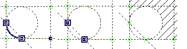 для привязки к дополнительному узлу. Этот узел будет определять вариант прохождения контура штриховки по дуге окружности, построенной на основе линии построения. При изменении чертежа контур штриховки будет привязываться к той дуге, которая находится наиболее близко к узлу привязки.