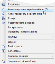 При этом к названию команды “Активизировать чертёжный вид” в контекстном меню добавляется уровень вложенности следующего чертёжного вида. Закрыть все активизированные чертёжные виды можно и с помощью команды “ |