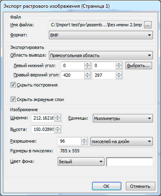В диалоге экспорт растрового изображения задаются следующие параметры: