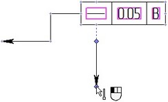 Задание положение допуска без выносной линии осуществляется по тем же правилам, что и в общем случае. Отличие лишь в том, что для позиционирования допуска без выносной линии требуется указать положение только одной точки привязки – точки привязки самого прямоугольника допуска.