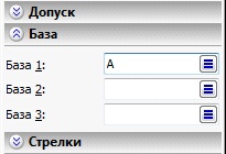 Раздел «База» База 1, База 2 и База 3. Это имена баз, которые могут быть размещены в обозначении допуска. Они представляют из себя текстовые строки. Как и в других параметрах, являющихся текстовыми строками, в качестве имен баз можно использовать переменные. |