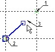 Если выбран только начальный узел, то для выбора будут доступны только те линии построения, на которых расположен уже помеченный узел. Начальный узел остается помеченным и по выбранной линии начинает перемещаться курсор в виде узла. Это означает, что конечный узел будущей линии изображения может быть выбран на пересечении данной линии с другой линией построения (если в точке пересечения узла не существует, то он будет создан автоматически).