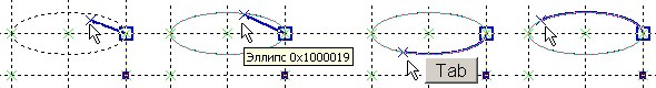 Как и при создании линии изображения, если вы хотите задать дугу, необходимо после выбора начального узла дуги указать окружность (сплайн, эллипс) клавишей <C> (<S>,<E>). В противном случае линией контура будет не дуга между двумя узлами, а отрезок.