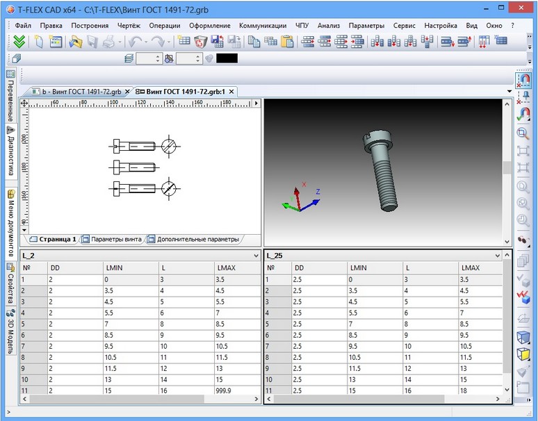 Благодаря тому, что диалог редактора баз данных открывается в отдельном окне, можно одновременно работать в основном окне документа T-FLEX CAD и в окне редактора, а также одновременно редактировать нескольких баз данных одного документа.