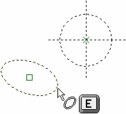 Данные опции позволяют создать прямую, касательную одновременно к эллипсу и окружности. Для построения прямой подведите курсор к исходному эллипсу и нажмите <E> (при включенной объектной привязке можно просто нажать