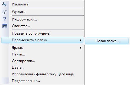 Для переноса сопряжения в другую папку воспользуйтесь пунктом контекстного меню «Переместить сопряжение в папку». В новом подменю доступны команды для создания новой дополнительной папки сопряжений, перемещения в основную и уже существующие дополнительные папки.