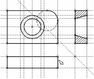 . Курсор при нанесении линии изображения работает по принципу «резиновой нити». Требуется лишь с помощью курсора выбирать узлы или пересечения линий построения.