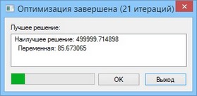 - Выполнить. Запускает расчёт оптимизации. При этом в соответствии с заданными параметрами оптимизации система производит поиск решения и пересчитывает чертёж или 3D модель в соответствии с найденными значениями переменных.