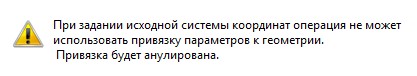 Привязка к геометрии не может быть использована в случае, если исходная системы координат примитива была изменена с помощью опции Выбрать или создать исходную систему координат. В этом случае появляется соответствующее сообщение.