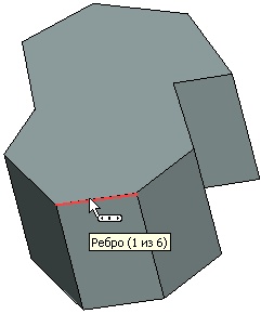 При работе команды для выбора доступен тот тип элементов модели, который необходим на данном этапе работы команды. Например, при построении сглаживания (опция "Выбрать ребро"), подсвечиваться при выборе будут только рёбра модели, все остальные элементы подсвечиваться при подводе курсора не будут, так как это не имеет смысла. Выбор группы объектов осуществляется последовательно, без нажатия клавиши <Shift>.