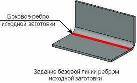 Базовая линия обязательно должна принадлежать плоскости одной из подлежащих изгибу граней заготовки (обычно это верхняя или нижняя грань). Базовая линия может не лежать целиком внутри границ базовой грани, однако хотя бы часть её должна принадлежать грани.