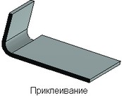 Приклеивание удобно использовать в тех случаях, когда заранее неизвестен даже предварительный вид развёртки проектируемой детали. В этом случае в качестве заготовки выбирается тело простейшей формы (обычно плоский параллелепипед). Затем к нему в нужных местах добавляются и одновременно отгибаются прямоугольные "язычки" заданной длины. Толщина приклеиваемых "язычков" совпадает с толщиной заготовки, а ширина определяется базовой линией (с учётом отступов).