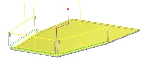 В некоторых ситуациях введение отступов позволяет построить гибку даже на основе изначально некорректной базовой линии. Например, это необходимо в ситуации, когда базовая линия гибки не лежит целиком на грани заготовки. Без задания отступов создание отгибания в этом случае невозможно. Задав отступ от края линии, можно уменьшить длину линии сгиба таким образом, что отгибаемый участок целиком уместится на базовой грани гибки.