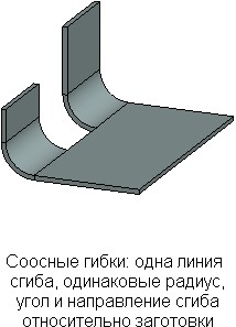 Соосными называются гибки, отвечающие следующим условиям: они должны принадлежать одному телу, иметь лежащие на одной прямой линии сгиба, иметь одинаковый радиус, угол и направление сгиба (относительно заготовки).