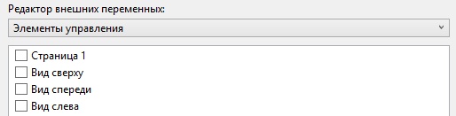Элементы управления. Данный вариант используется, если в текущем документе создан пользовательский диалог параметров для редактирования внешних переменных. В списке страниц обязательно должны быть помечены те страницы документа, которые должны отображаться в окне диалога.