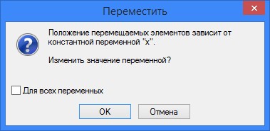 находится в нажатом состоянии, то значения переменных, от которых зависит положение перемещаемого элемента, будут изменены в соответствии с его новым расположением. Иначе при необходимости изменить значение переменной на экране будет появляться вопрос: