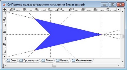 В общем случае изображение линии создаётся из следующих элементов: “Знак”, “Промежуток”, “Линия”, “Начало” и “Окончание”.