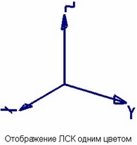 Одним цветом. Данный флажок отвечает за внешний вид ЛСК. Когда он снят, оси ЛСК рисуются разными цветами. Цвета осей (красный, зелёный, синий) совпадают с цветами осей глобальной системы координат. При установленном флажке ЛСК отображается одним цветом (параметр “Цвет”).