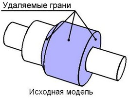 Замкнутая последовательность рёбер разделяет грани тела на два набора: один удаляется, другой остается. Для определения того, какой именно набор граней будет удален, а какой нет, используется опция «Выбор граней по рёбрам».