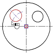 Обратите внимание, что после создания осей команда остаётся в режиме создания осей с тем же центральным узлом. Для создания ещё одной оси (или пары осей) достаточно выбрать следующую линию изображения окружности, эллипса или дуги. Для того, чтобы вернуться на стадию выбора центрального узла, достаточно нажать